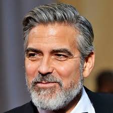 Hairstyles for men in their 50s. Textured slicked back undercut white hair beard. Classic side part stubble beard. Trendy hairstyles for men over 50 funky short hairstyle.